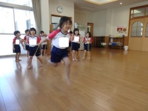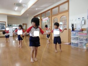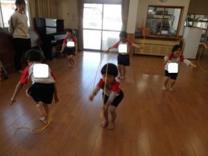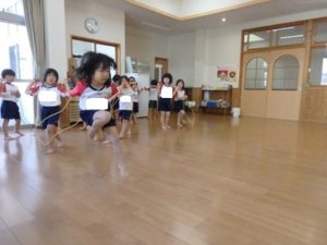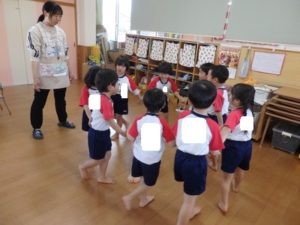 体操教室の時間まで、室内で「かごめかごめ」をして楽しみました。