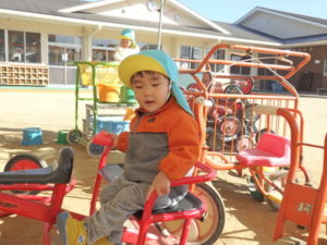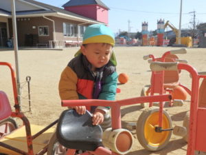 園庭では、三輪車が人気なのですが、うまく進めない事も・・・💦