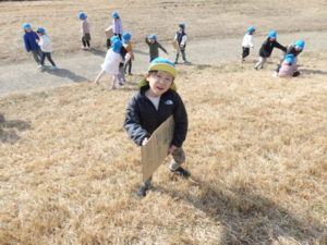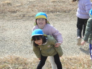その後は、鬼ごっこをしたり、競争したりとそれぞれの遊びを楽しみ、寒かったはずですが「暑い暑い」といいながら園に帰りました。