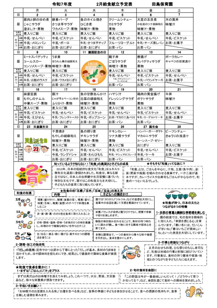令和7年度 2月献立表