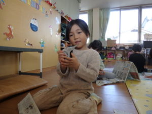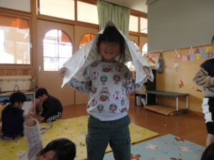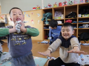 明日の豆まきに向けて、「鬼は外~❣❣」と、豆を投げる練習をしている子もいました。