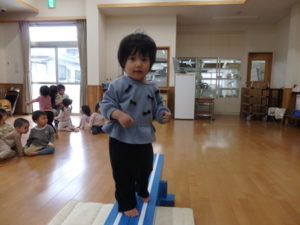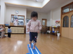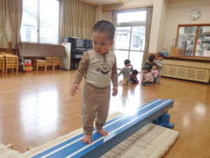 今日は、最初に平均台遊びをしました。