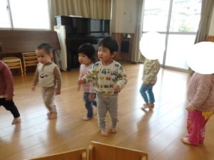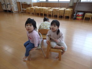 最初は何度か練習をしながら進めていくと、少しずつルールが分かってきた様子で、音楽が止まると急いで椅子に座る姿が見られました。
