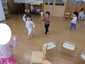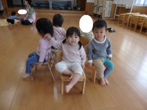 その後は、初めてのゲーム遊びとして「椅子取りゲーム」に挑戦しました。