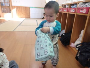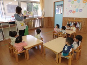今日は、2月の月刊絵本を読み、シール貼りをしました。
