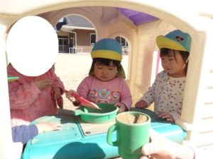 お友達と一緒に、会話のやり取りをしながら「おままごと」をしたり、すべり台を滑ったりして遊びました。