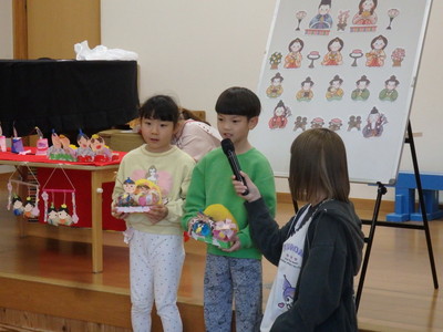 各クラスごとに作ったひな人形🎎は、「どうやって作ったのか?」「どこが難しかったのか?」を発表してくれました。