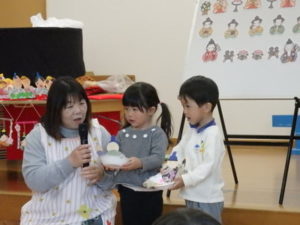 まずは、ひな祭りについてのお話を「パネルシアター」でしました。