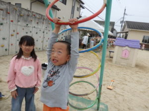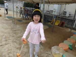 お休み明け、朝からいっぱい戸外遊びを楽しみました。