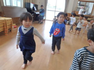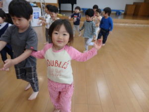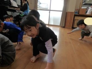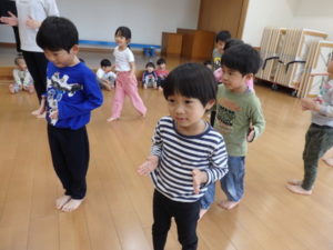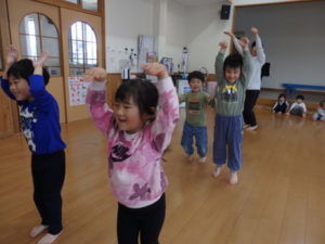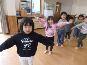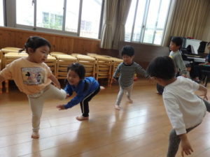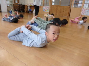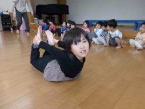子ども達は、お手本をよく見て真似しながら、のびのびと体を動かす姿が見られました。