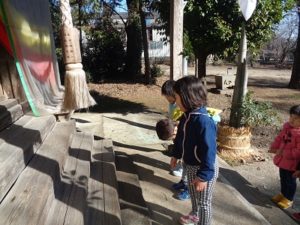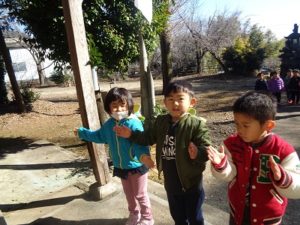 今日、ぱんだ組は、田島一区の菅原神社へ初詣に行きました。