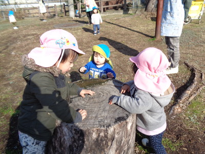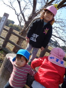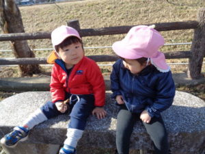 今日は、ひよこ・りす組で一緒に温泉公園まで散歩に行きました。
