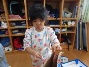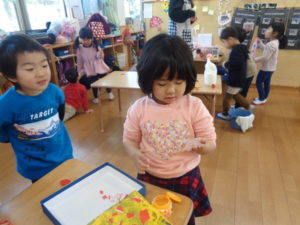 ぱんだ組<お面作りの仕上げ>&ひよこ・りす組<お散歩>
