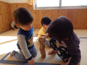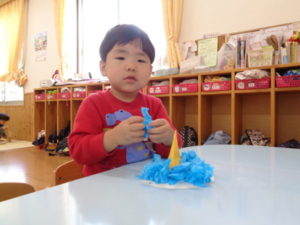 花紙をくしゃくしゃとして、上手にペタッと貼ってくれたりす組さん。