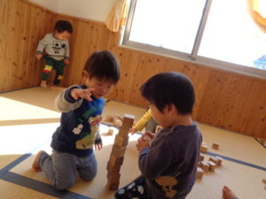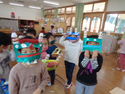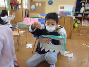 きりん組(鬼のお面作り)&りす組(鬼のお面&豆入れ作り)