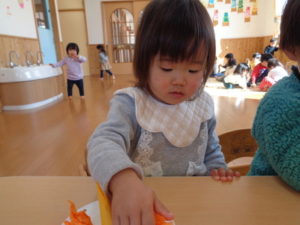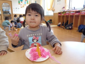 豆入れのまゆ毛を貼るのが難しかったですが、根気よく貼ってくれ成長を感じました(^▽^)/