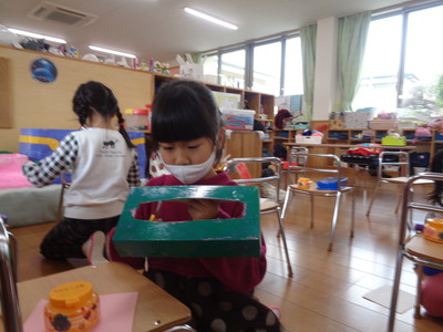 きりん組(鬼のお面作り)&りす組(鬼のお面&豆入れ作り)