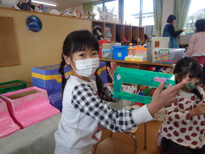 きりん組(鬼のお面作り)&りす組(鬼のお面&豆入れ作り)