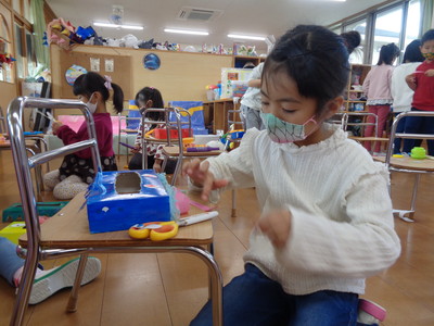きりん組(鬼のお面作り)&りす組(鬼のお面&豆入れ作り)