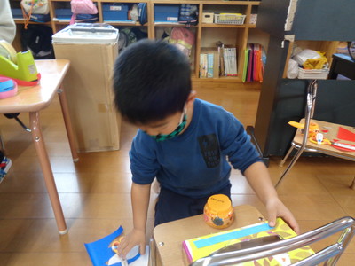 きりん組(鬼のお面作り)&りす組(鬼のお面&豆入れ作り)