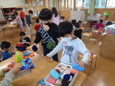 きりん組(鬼のお面作り)&りす組(鬼のお面&豆入れ作り)