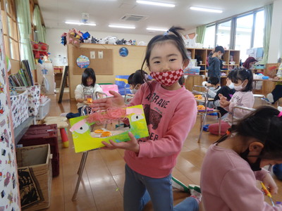 きりん組(鬼のお面作り)&りす組(鬼のお面&豆入れ作り)