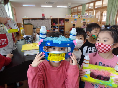 きりん組(鬼のお面作り)&りす組(鬼のお面&豆入れ作り)