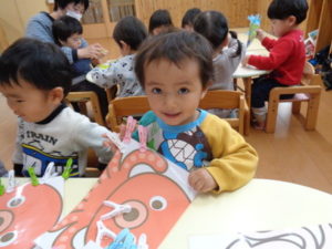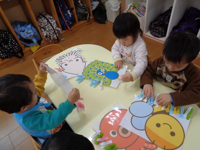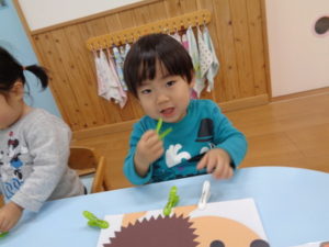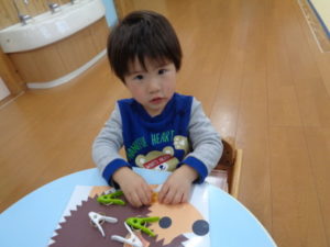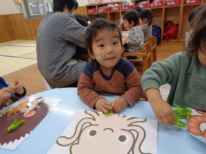 今日は、洗濯ばさみでライオンさんやひまわり等を可愛く作りました。