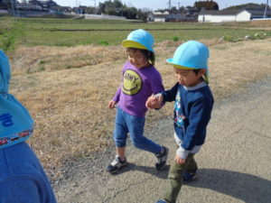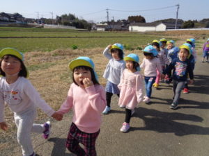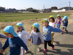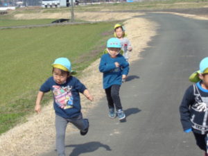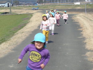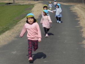 途中で、かけっこをしよう!となり、女の子、男の子に分かれてかけっこしました。