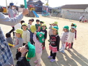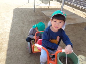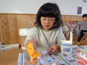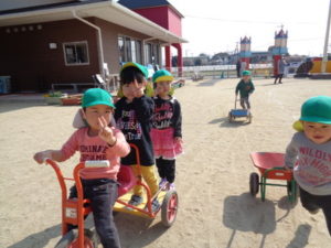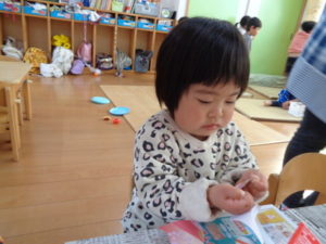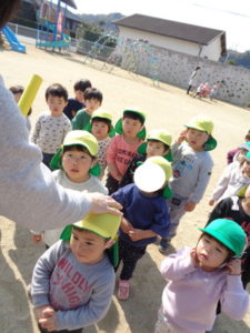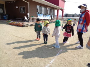 ひな祭りの製作を行い、その後に外で思いっきり遊びました。