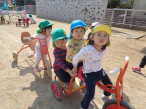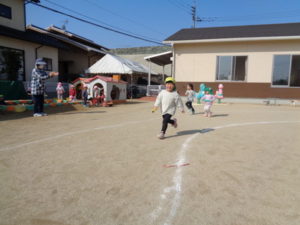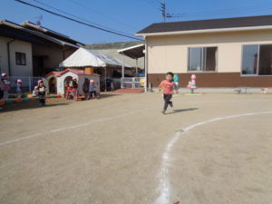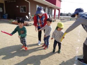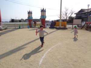 お外では、みんなでリレーをしました。