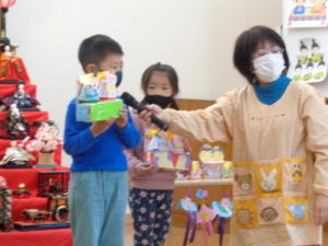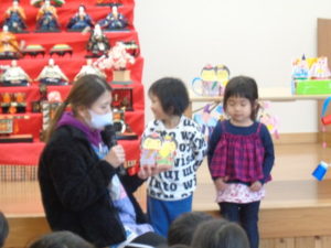 ひな祭りの由来のお話を聞いたり、紙芝居を見たりしました。