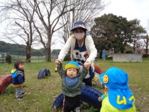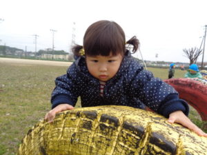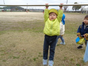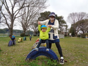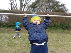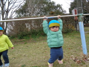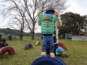鉄棒にぶら下がったり、タイヤに乗り”ピョ~ン”とジャンプしたり・・・