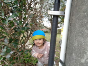 “さざんか”の生垣の隙間から、下り坂をトットット~と降り運動場へ。