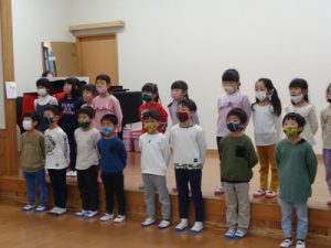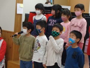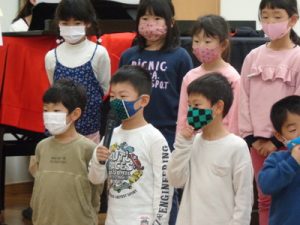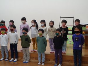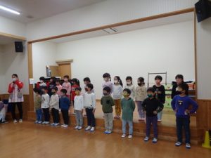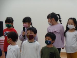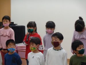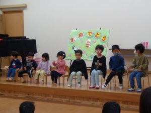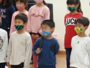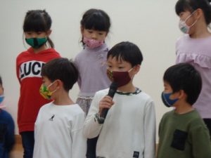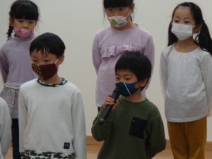 きりん組さんから抱負を一言ずつ言ってもらい、歌のプレゼントがありました。
