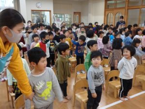 今日は、3月生まれの誕生会ときりん組さんのお別れ会をしました。