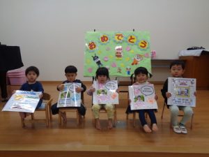 誕生会では、3人の年長さん保護者の方にも参加いただき