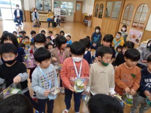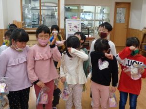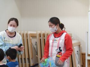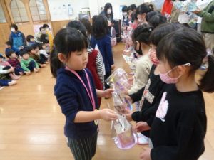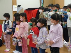 お返しに、くま組さんからも感謝の言葉とプレゼントをもらったきりん組さん。