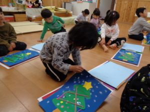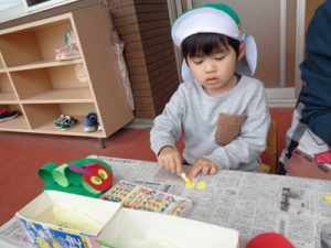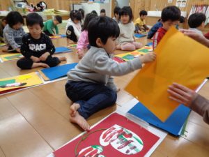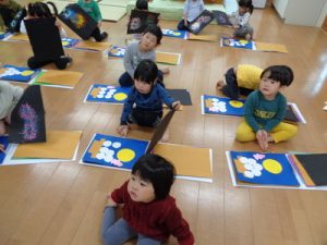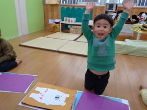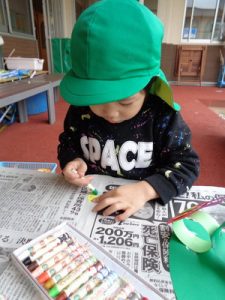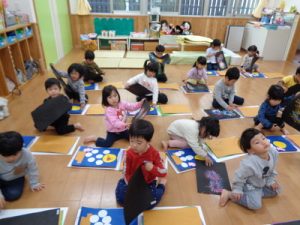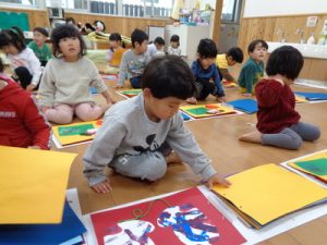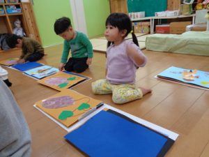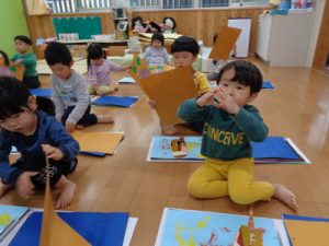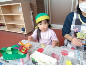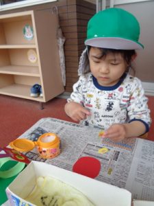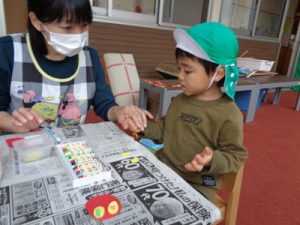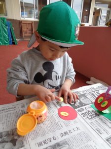 今日は顔のパーツを主に行い、目を描いて貼って楽しんでいました。