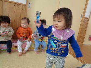「アンパンマンの曲」が鳴らす事を楽しんでいました。