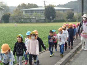 きりん・くま・ぱんだ組さんで、お散歩に行きました。