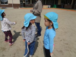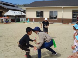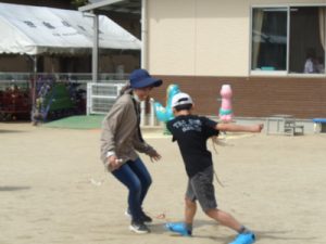 初めは子ども達同士でのゲームでしたが、次は先生対子どもで、