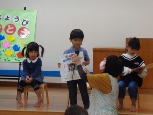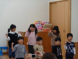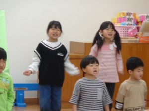 きりん組の出し物では、「手のひらを太陽に」を歌って踊りました❢❢