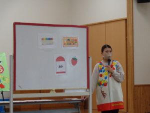 上手に自己紹介をし、名前と頑張りたい事を発表しました。