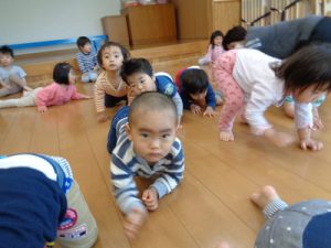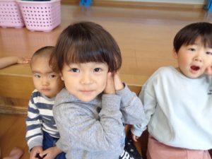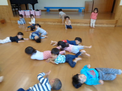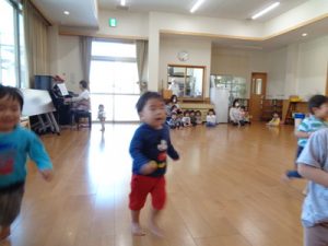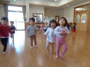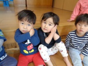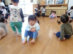 今日は、今年初めての りす・うさぎ組のリトミックを行いました。