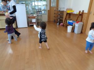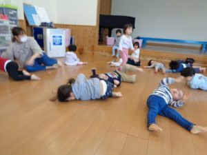 また、最後はチューリップの歌を歌ってリトミックを終わりました。