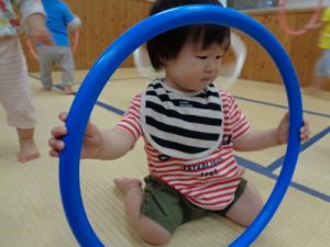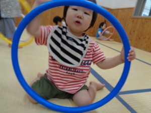 フープの中を歩く時も、小さいながらに