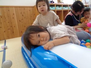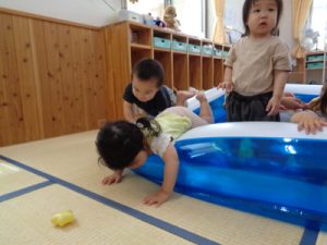 プールの中に入って”ゴロン”したり、