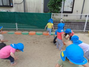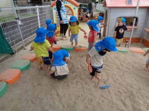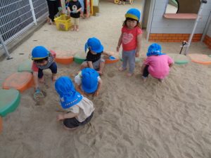 砂場の上で気持ちよく遊びました。