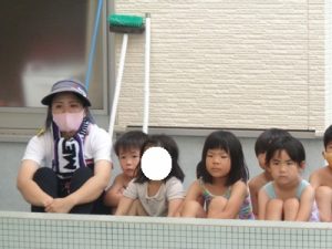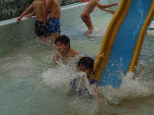 ぱんだ組→くま組→きりん組の順にシャワーを浴びてプールへ・・・。